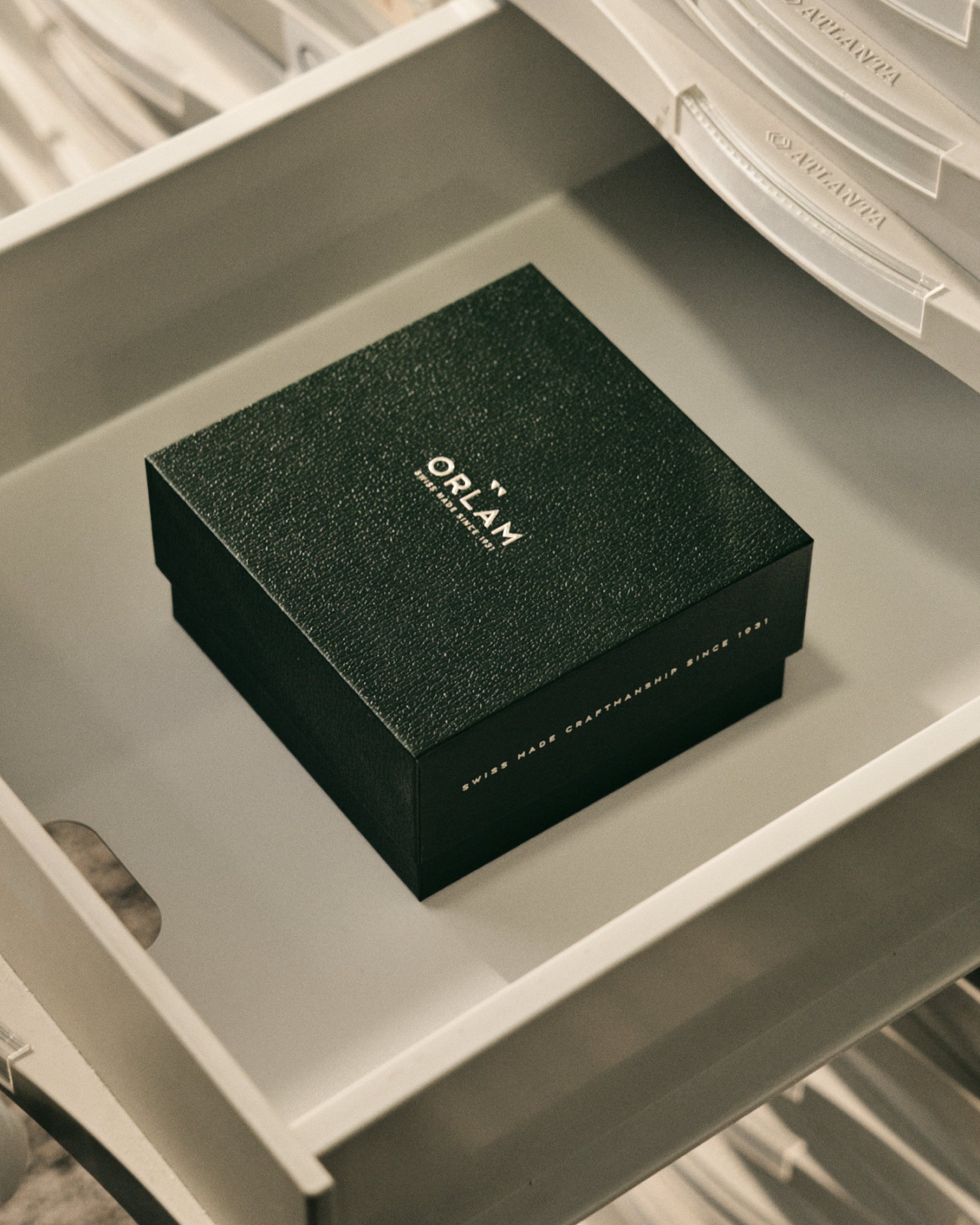 Each Orlam watch is carefully presented in an elegant case, designed to protect it and showcase it from the moment it is opened. Created to preserve the quality of your piece during transport, this case combines protection and sophistication. It accompanies your watch over time and can be kept to store it safely.