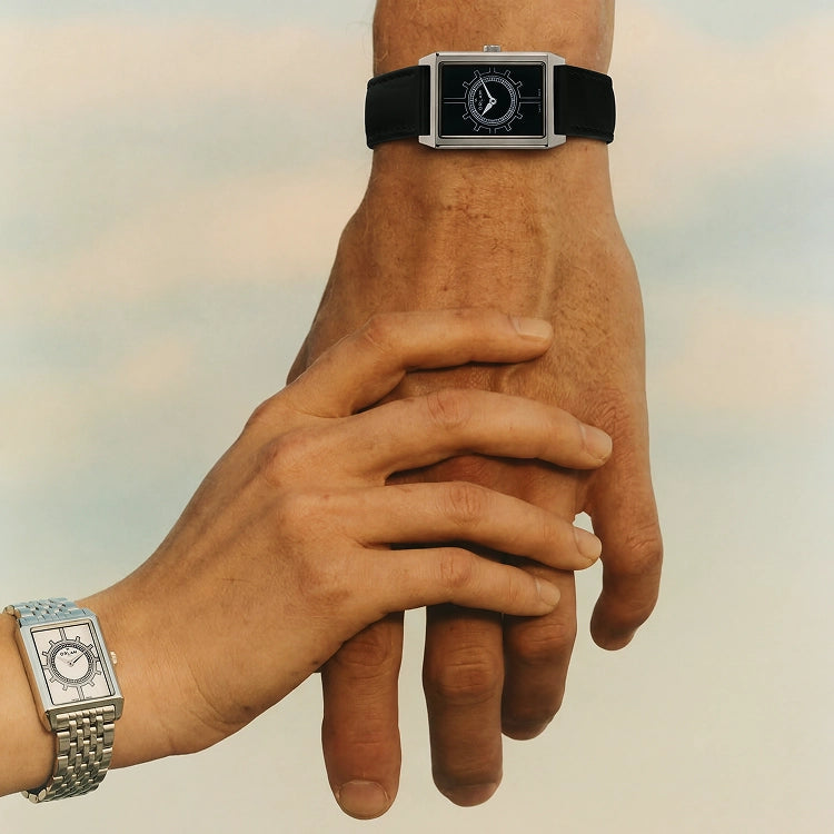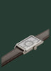 Rectangular case with an extra-thin profile, featuring a white dial and leather strap, made in Switzerland for a heritage silhouette that is elegant and decidedly contemporary.